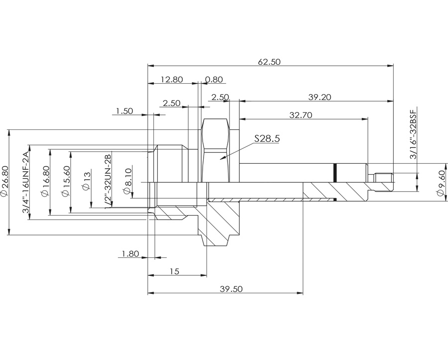 - 拉式,三段氬弧焊接,外六角螺紋連接