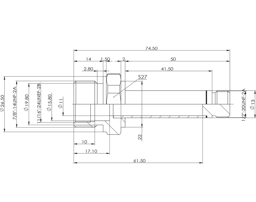 - Толкаемый тип, трехступенчатая сварка, соединение с внешней шестигранной резьбой